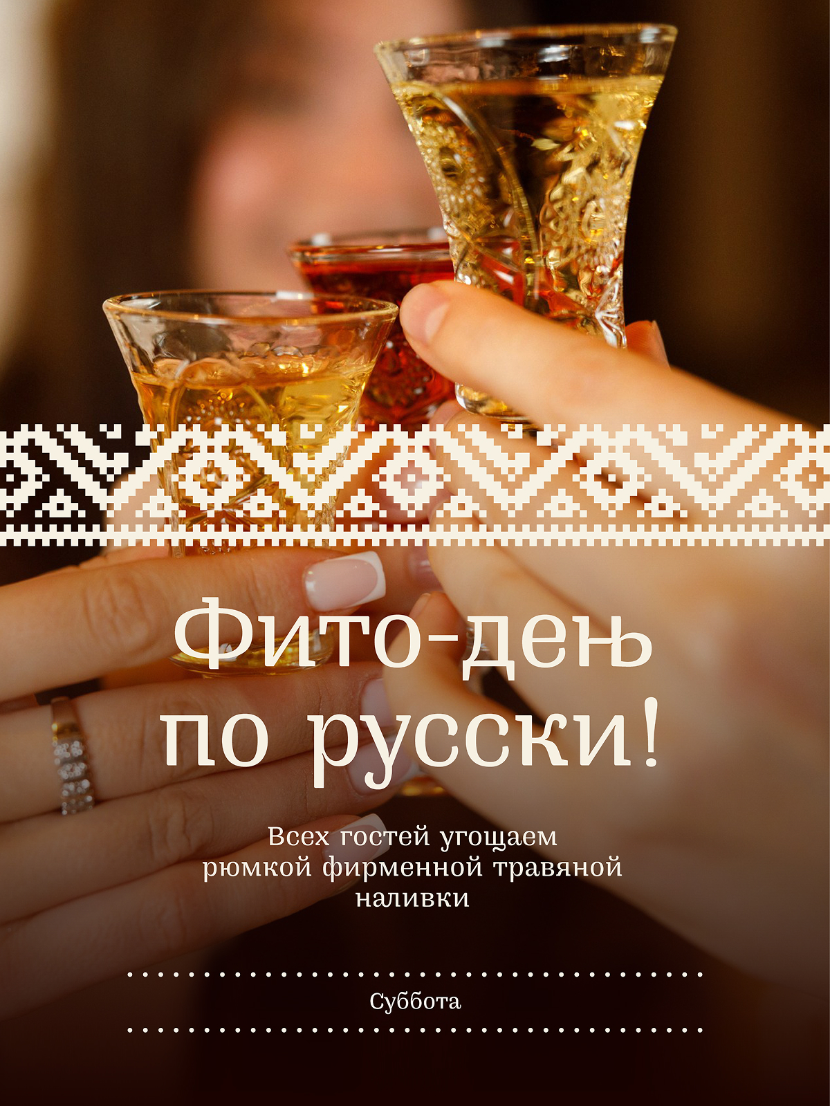 Весь день при входе в ресторан угощаем гостей фирменной травяной наливкой